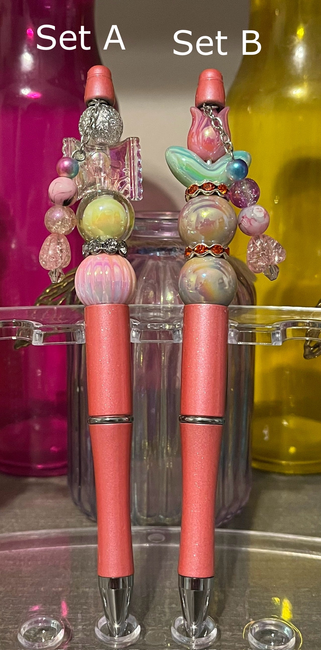 Experience the unique and handmade perfection of our BEADED PENS - a must-have addition to your writing tools collection! Crafted with the finest stainless steel and acrylic materials, each pen features an array of colorful beads that could include stones, porcelain, glass, and acrylic, wood, or silicone making every pen truly one-of-a-kind. Elevate your writing experience with our stunningly beautiful pens.